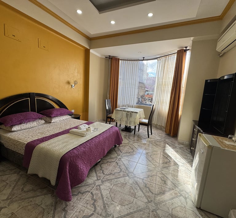 Nuestra habitación más exclusiva, amplia y confortable, con vista panorámica y jacuzzi privado equipado. Ideal para parejas o viajeros que buscan relajación, privacidad y una experiencia superior.